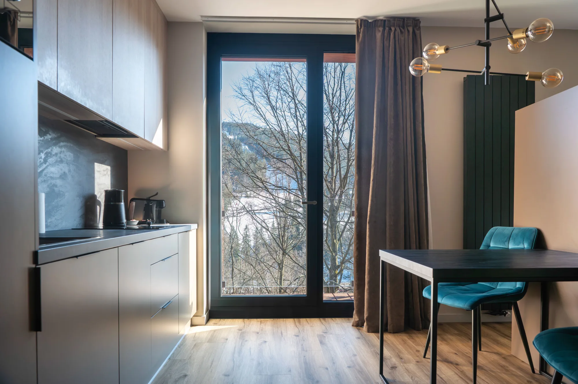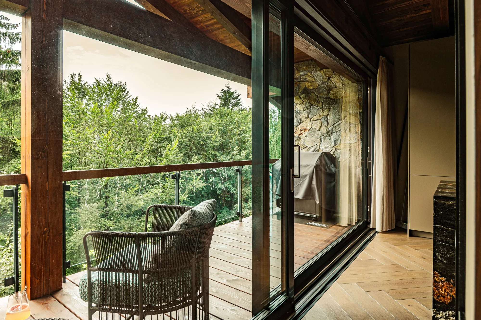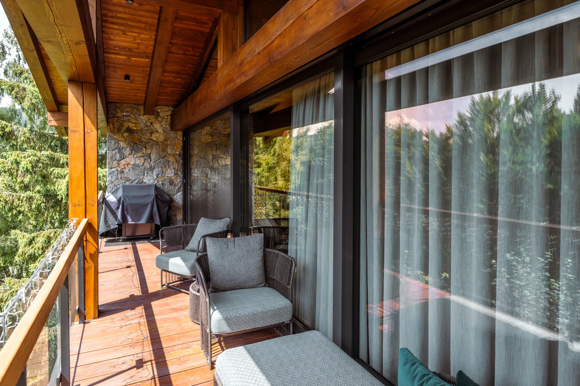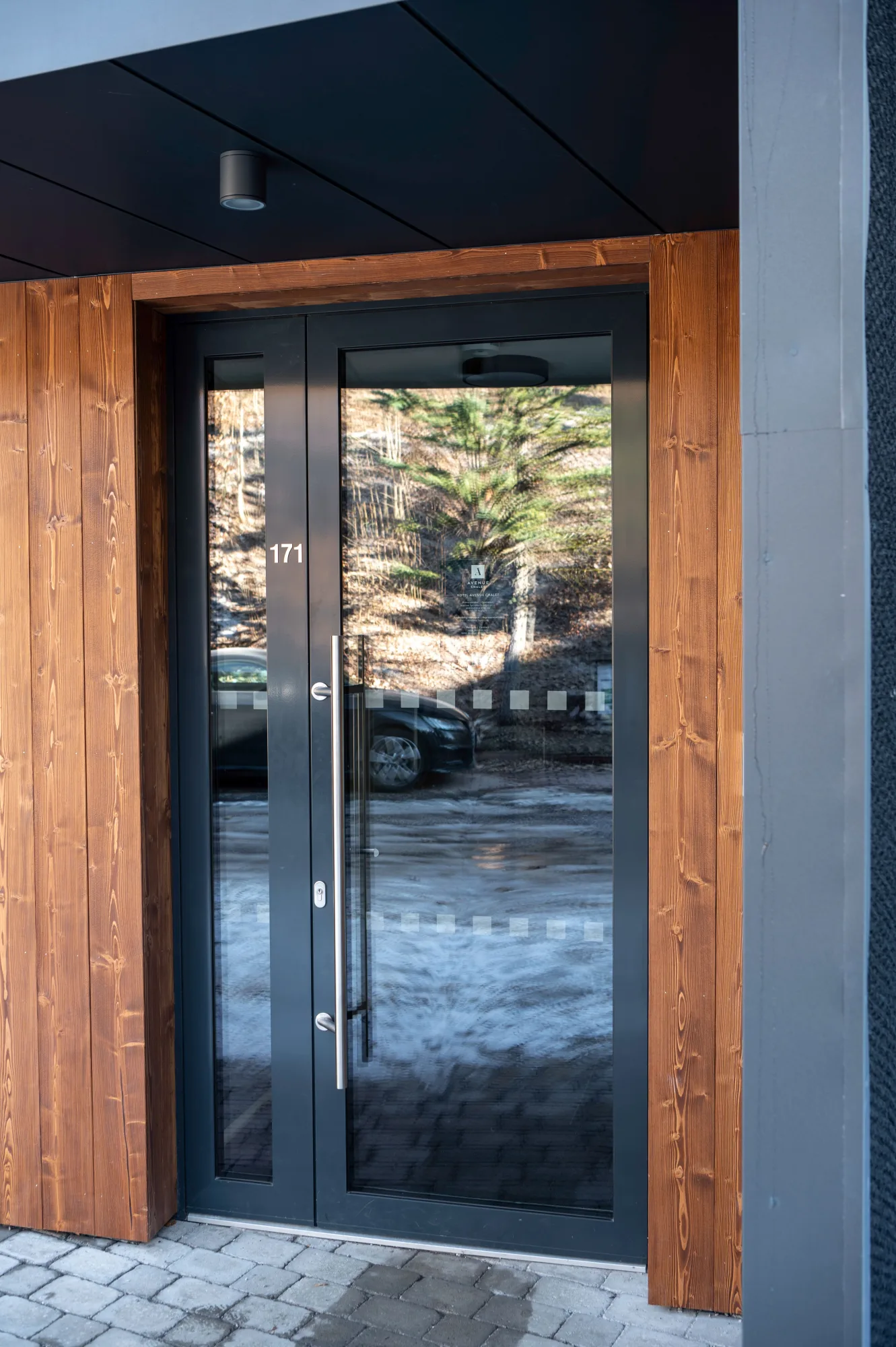 Novostavba horského apartmánového domu s trojkolejnicovým HS portálem a atypickými okny ve štítu