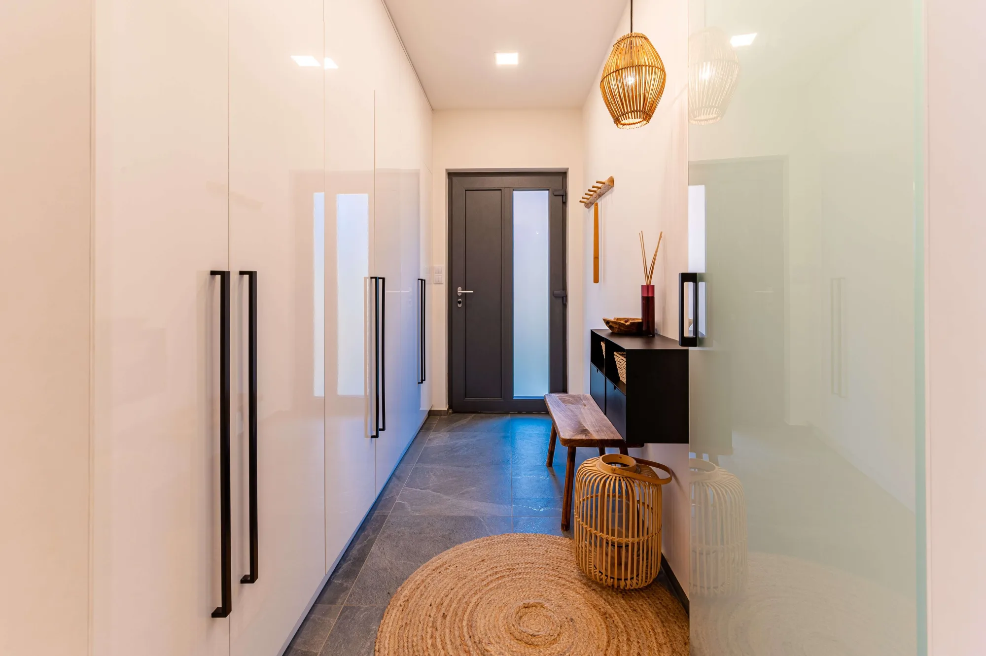 Vchodové dveře: typ DAFE STANDARD 2C, ornamentní sklo Matulex, kování Rondo Design klika/madlo nerez