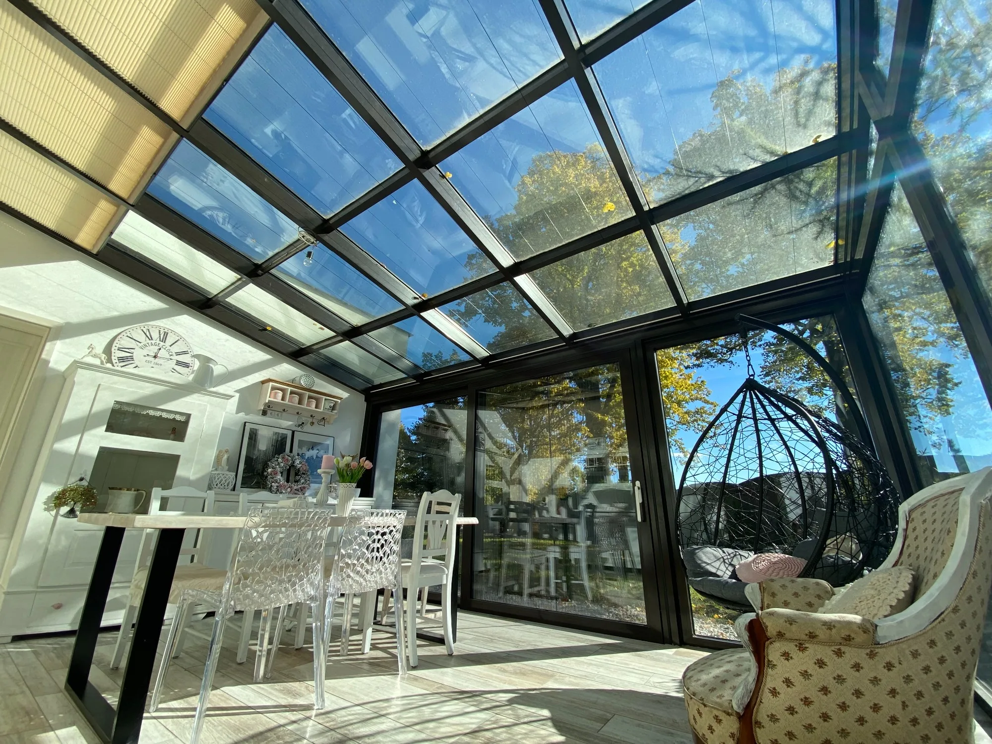 střecha: celoprosklená, protisluneční bezpečnostní tepelně-izolační dvojsklo Ug = 1.1